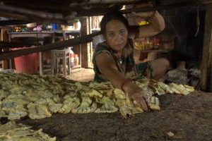 Sấy măng rừng trên lò đất đỏ